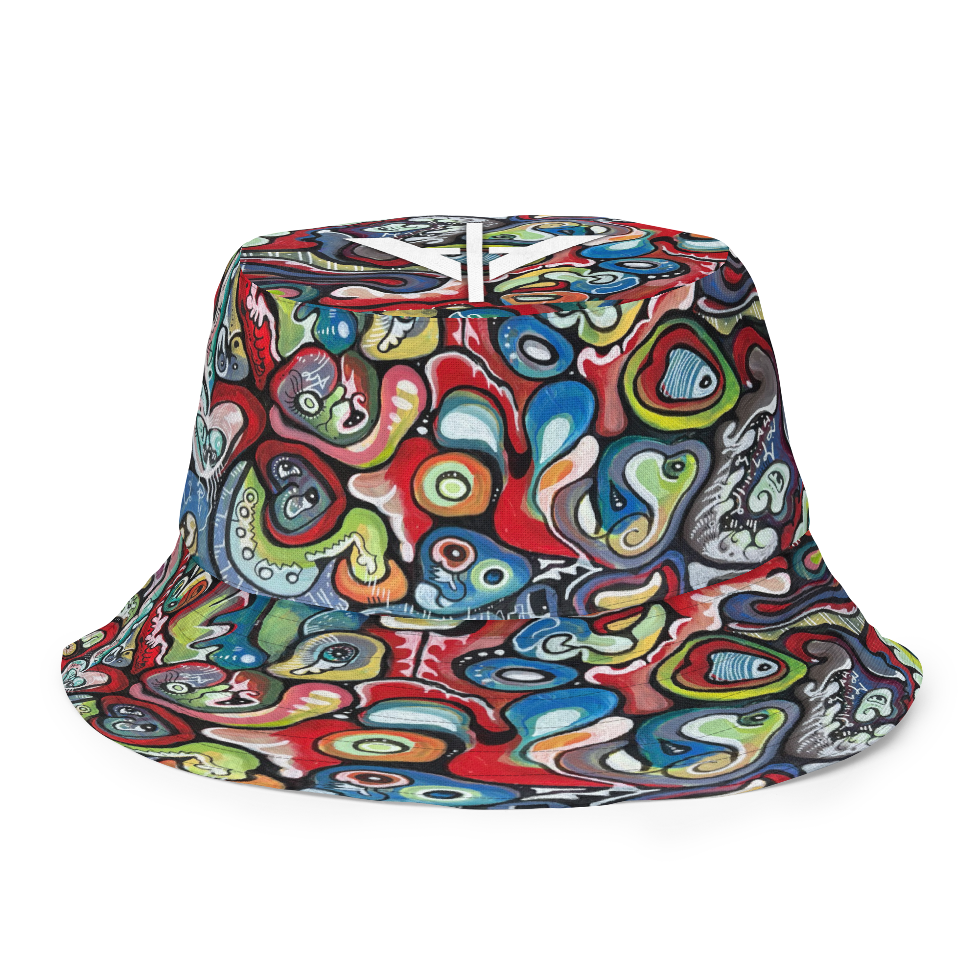 Flip your perspective with this audacious reversible bucket hat—two bold designs in one fearless statement piece. Crafted for those who refuse to play it safe, switch between contrasting sides to match your mood, outfit, or artistic vision. Whether you're making waves at the gallery or owning the streets, this artist edition delivers versatility without compromise. Structured yet adaptable, it's the ultimate accessory for creative rebels who demand more from their wardrobe.